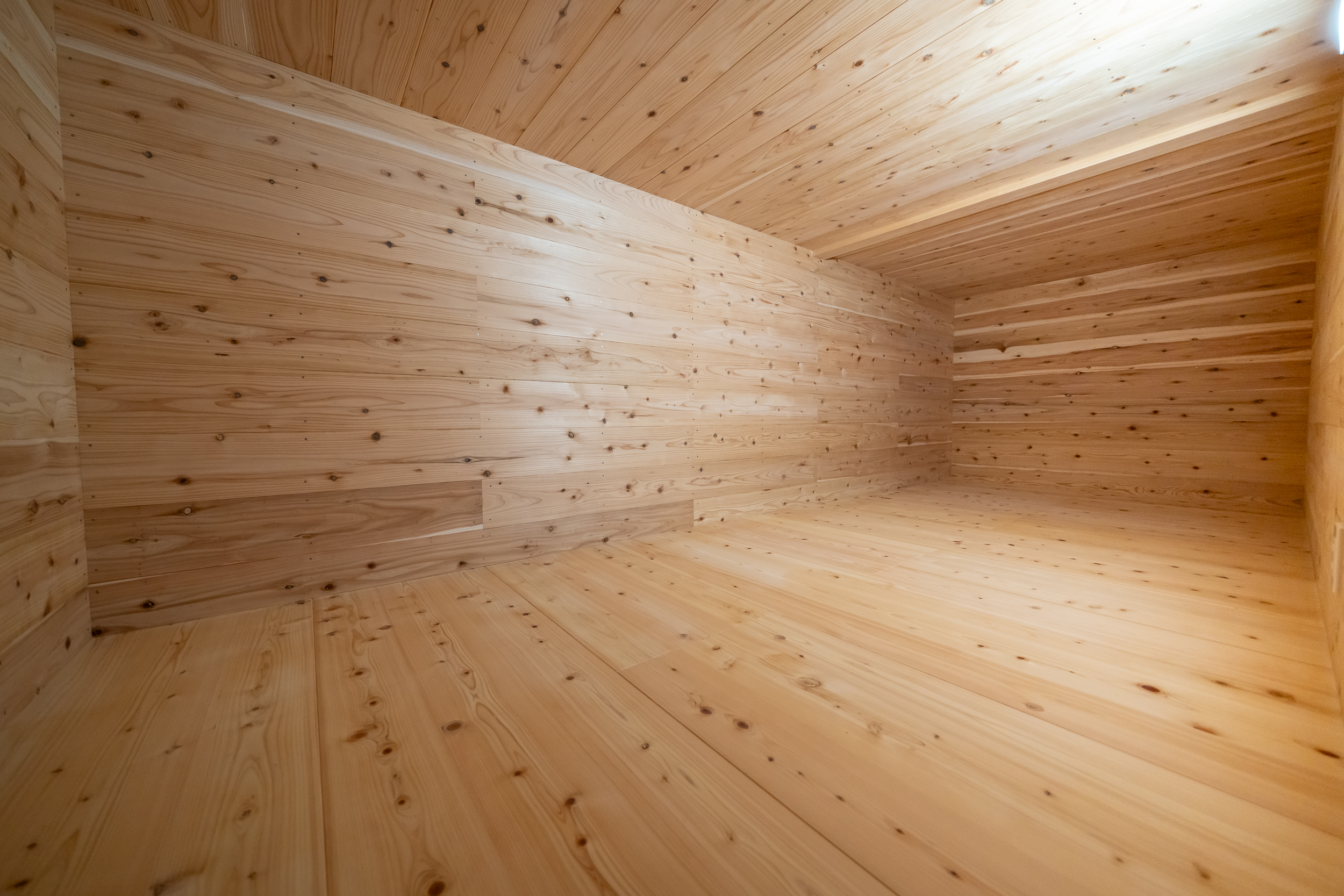 背面には杉板張りを施し、