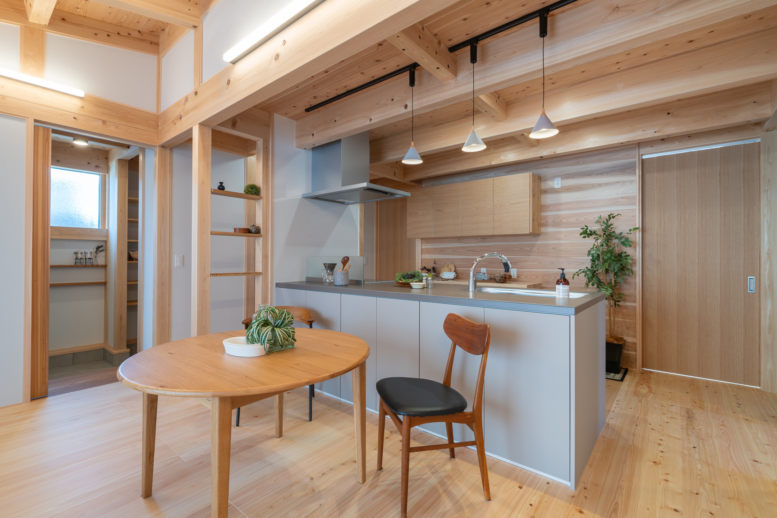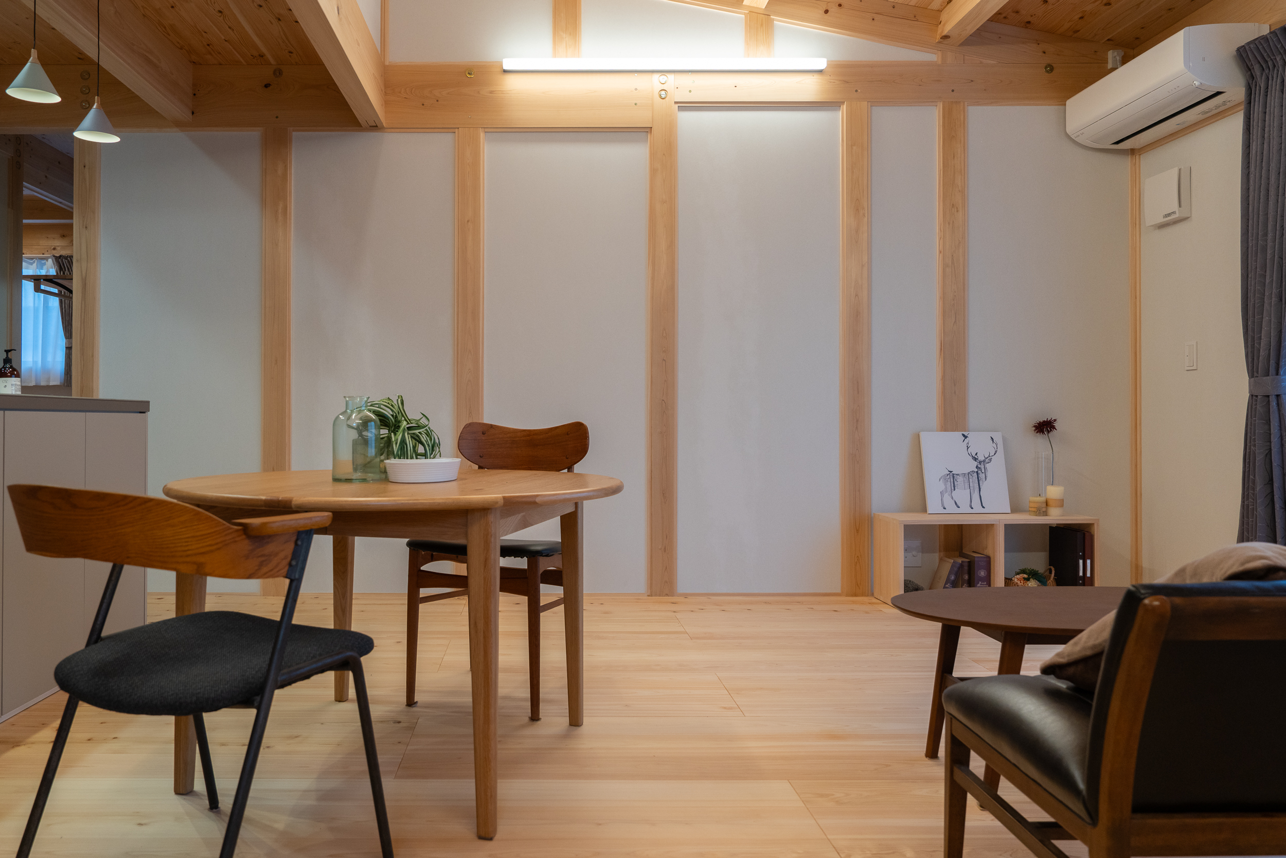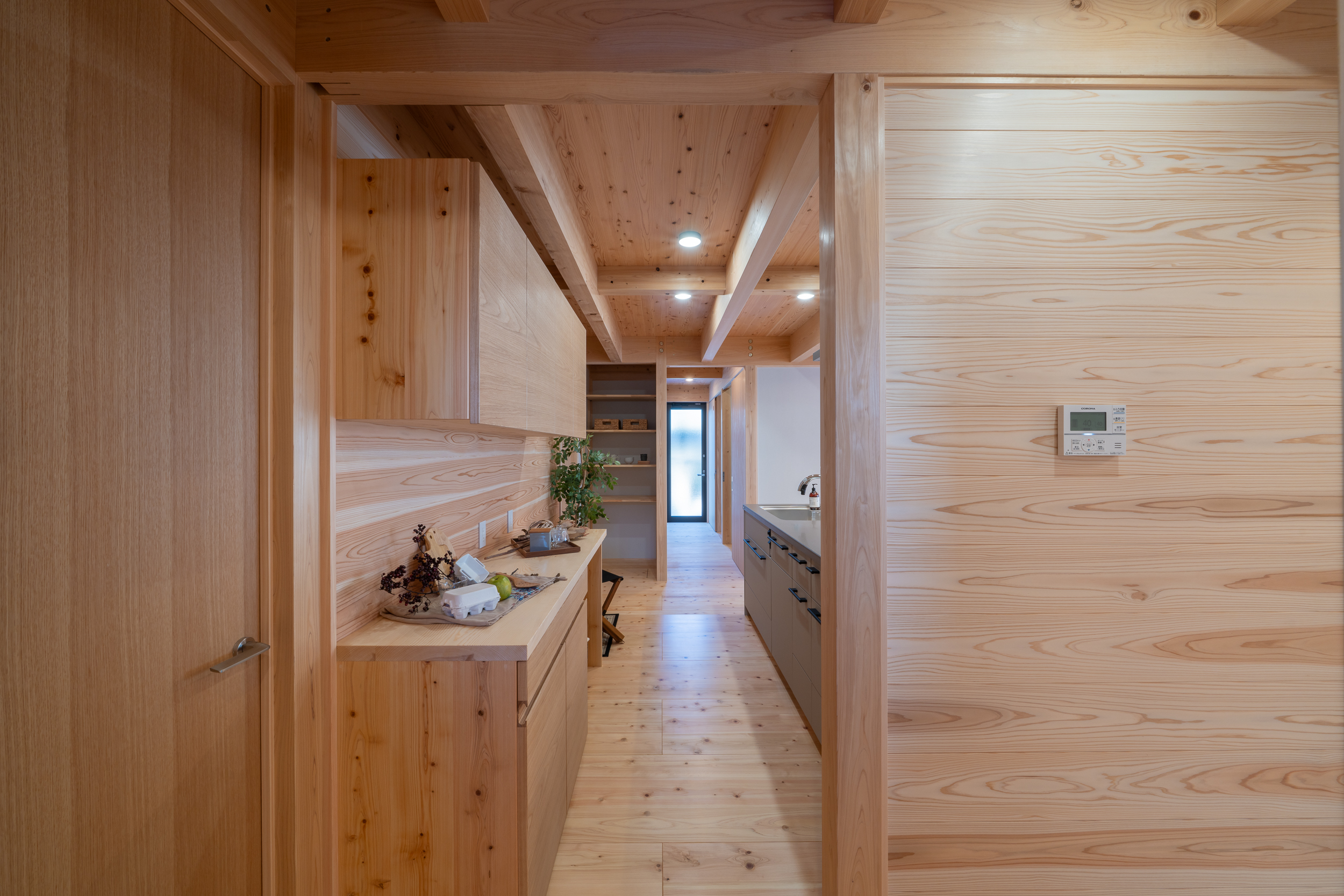 無垢材のみを使用し、壁には土壁パネルを