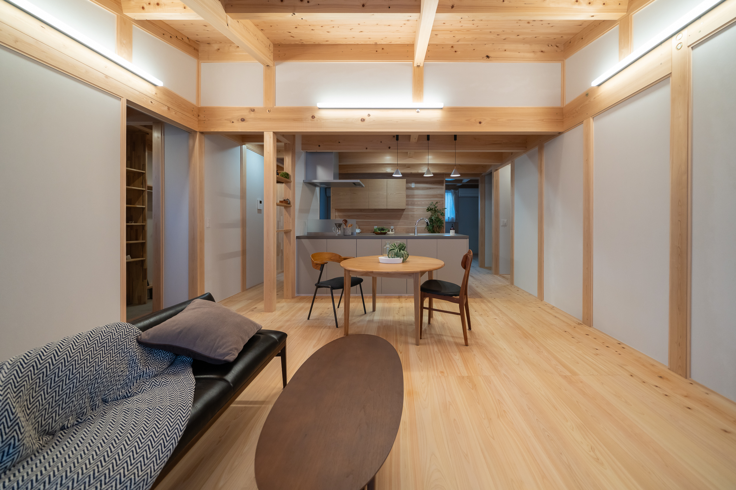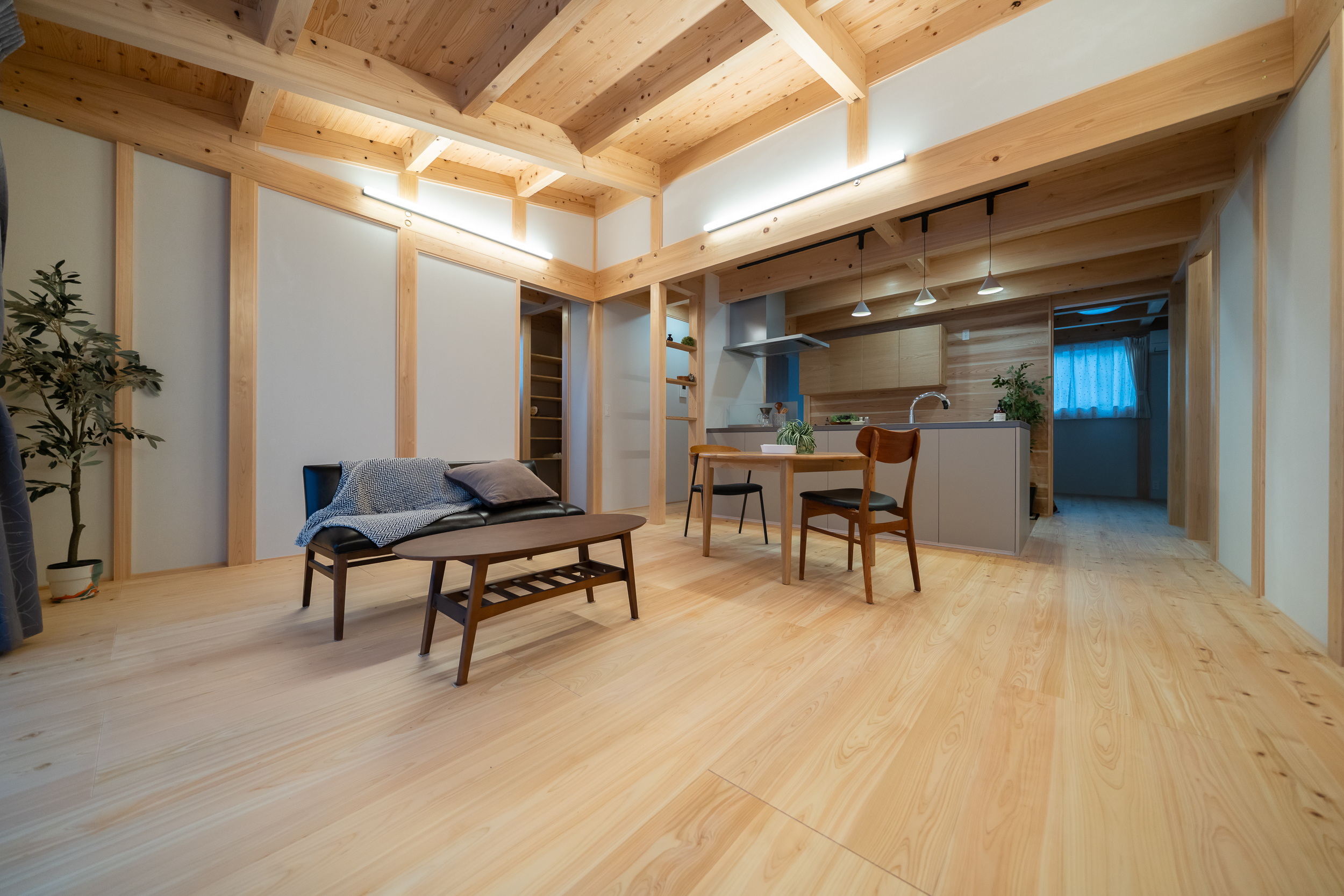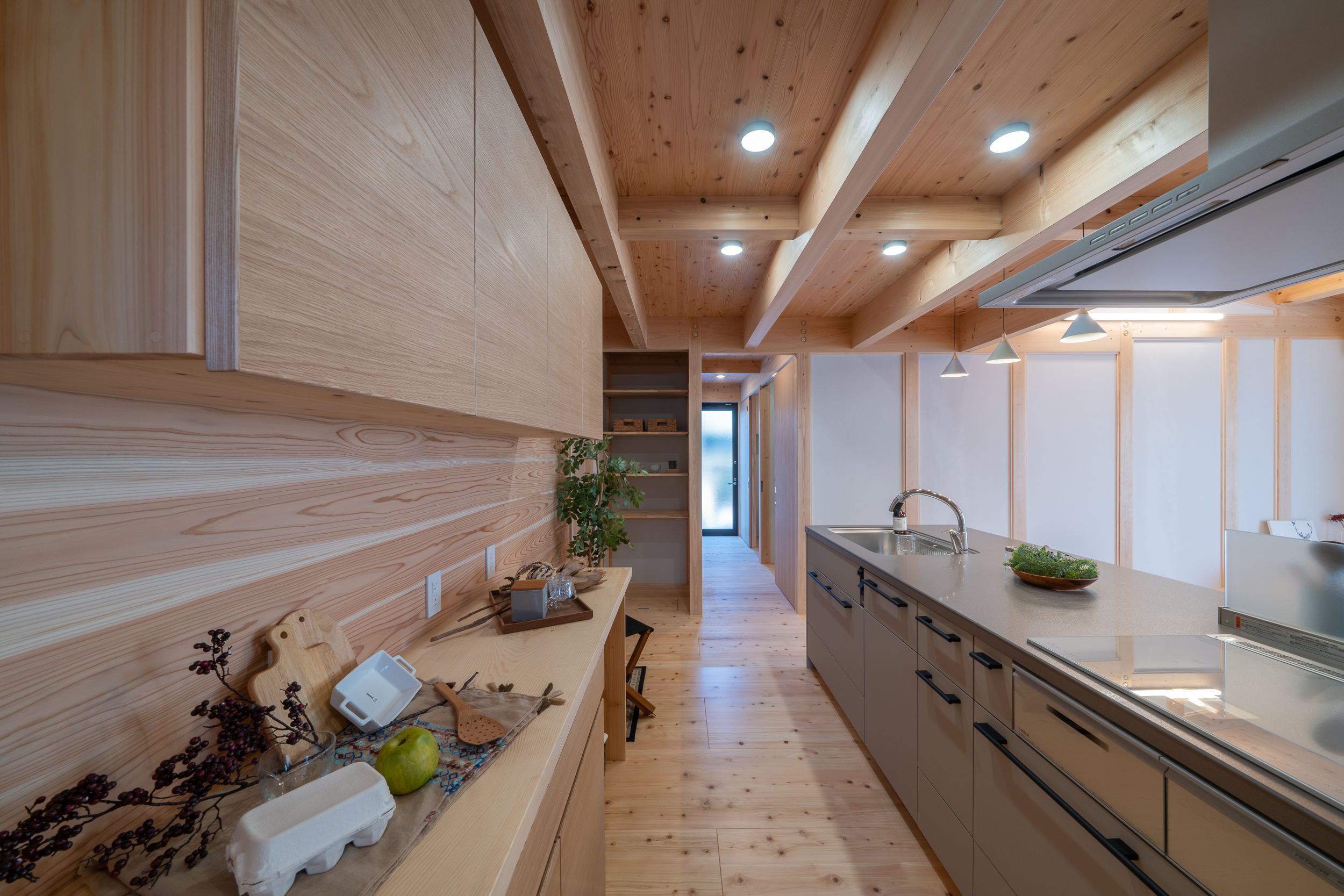 無垢材のみを使用し、壁には土壁パネルを