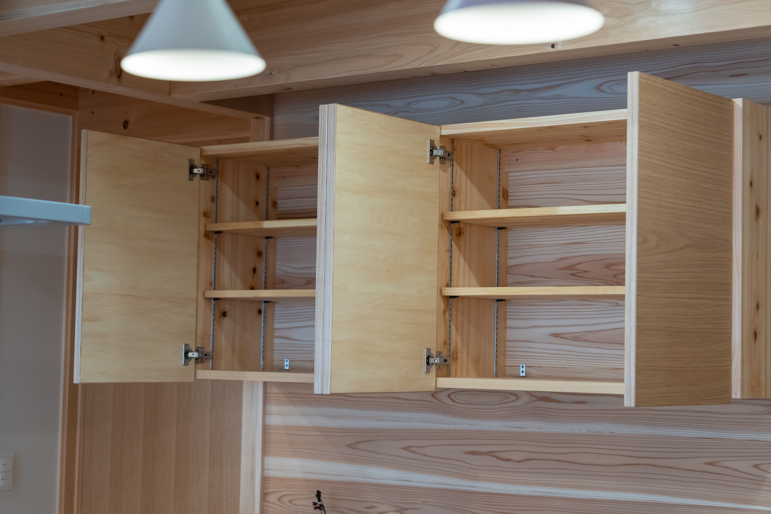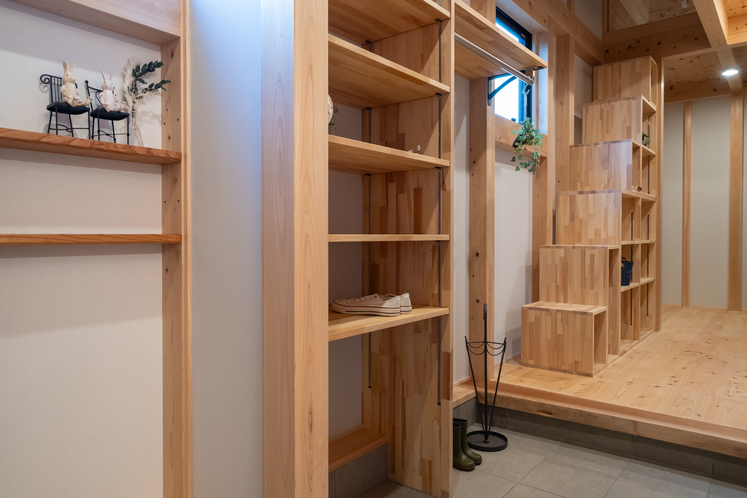 各所の造作収納棚、