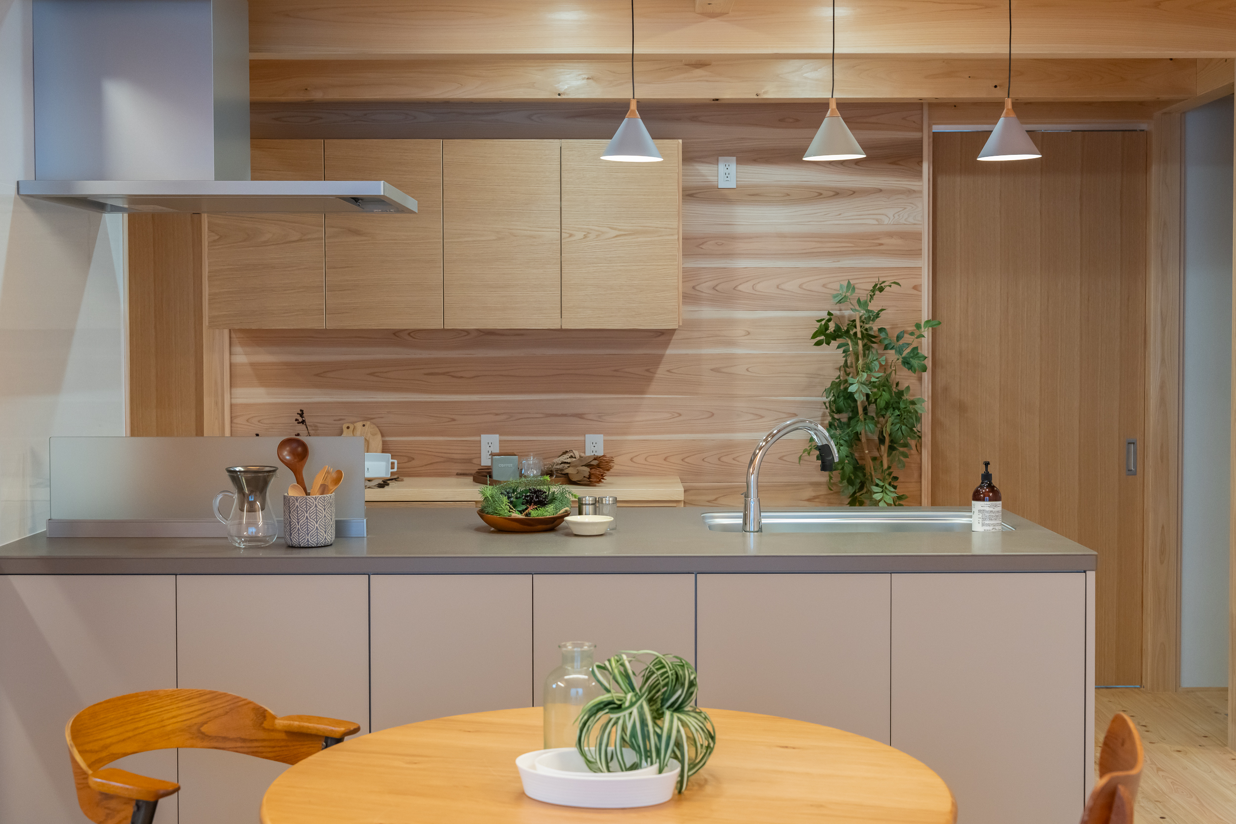 勾配天井が空間に高さを生み、